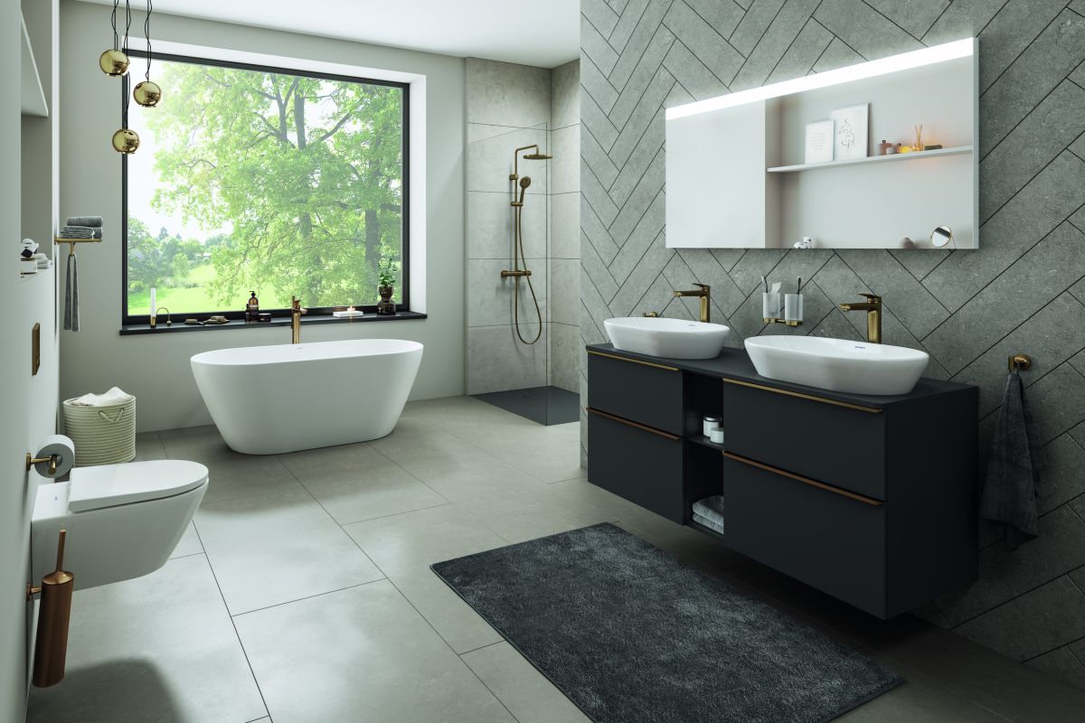 Firma Duravit oferuje kompleksowe rozwiązania, które umożliwiają niezwykłą metamorfozę. Wśród nich znajdują się baterie umywalkowe, prysznice oraz akcesoria do ceramiki i wanien, a także detale wykończeniowe – na przykład uchwyty do mebli łazienkowych. Wszystkie komponenty dostępne są w starannie dobranych wariantach wykończeń: polerowane złoto, matowa czerń, chrom, szczotkowana stal nierdzewna oraz szczotkowany brąz. Dzięki temu możliwe jest stworzenie konsekwentnej, eleganckiej stylistyki bez konieczności wymiany całego wyposażenia.